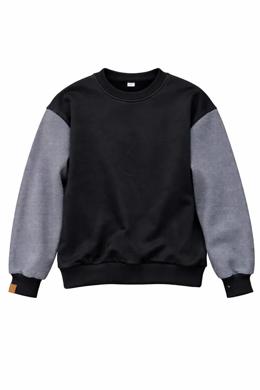 Uszyta i gotowa do wysyłki. Model: Bluza o szerszym kroju z opuszczoną linią ramion. Kolor: czarna + paseczki Rozmiar: S Wymiary: długość – 57cm, szerokość – 58cm, długość rękawa mierzona od szyi – 70cm Materiał: czarna dresówka hydrofobowa 50% bawełna 50% elastan, paseczki 97% bawełna 3% elastan Produkt dostępny od ręki. Wysyłka 1-2dni.