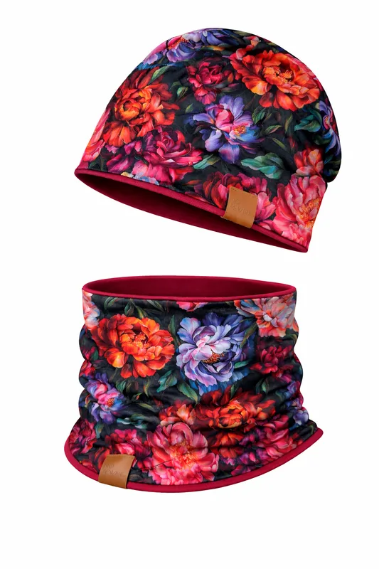 Czapka i komin dziecięcy r. 46/48 piwonie