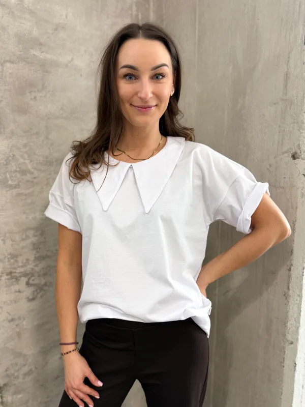T shirt oversize z kołnierzykiem Stylowy