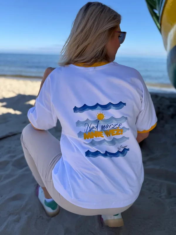T-shirt weź mnie nad morze! Poczuj klimat wakacji – gdziekolwiek jesteś! Ten wyjątkowy t-shirt to idealne połączenie luzu, słońca i morskiej bryzy. Zaprojektowany z myślą o letnich dniach i dobrej energii, sprawdzi się zarówno na plaży, jak i w miejskich stylizacjach. ✨ Dlaczego go pokochasz? Unikalny nadruk – ręcznie ilustrowane fale i słońce + napis „Nad morze mnie weź!” przyciągają uwagę i dodają wakacyjnego vibe’u Dwustronny design – subtelny napis „Weź mnie!” z przodu, pełna grafika z tyłu Letnia kolorystyka – świeża biel z kontrastującymi żółtymi wykończeniami Wygodny krój – luźny, casualowy fit, który świetnie układa się na sylwetce Miękka bawełna – przyjemna dla skóry, oddychająca, idealna na ciepłe dni 95%bawełna 5% elastan – grubszy i elastyczny Długość standard: 60cm Szerokość t-shirtów na wysokości biustu: XXS 47cm XS 49cm S 51cm M 53cm L 55cm XL 57cm Materiał: jersey bawełniany – bawełna 95% elastan 5% 💛 Mały manifest dla wszystkich tęskniących za morzem. Bo czasem wystarczy t-shirt, żeby poczuć się jak na wakacjach.