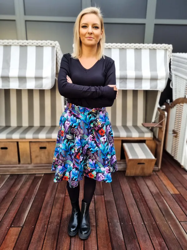 Genialna spódnica która wyróżni Cię z tłumu. Klasyczny krój spódnicy ciętej z pół koła, nowoczesny, dresowy materiał w wielu wzorach do wyboru. Praktyczne kieszenie? Pewnie! Jeśli tylko chcesz 🙂 Pasuje idealnie do naszych t-shirtów idealnych i bluz tatar. Szyjemy na wymiar. U góry pasek o wysokości 6cm i wszyta rozciągliwa guma, bez zamka. Długość? Możesz wybierać dowolną max 55cm. Skład: 95 % bawełna 5 % elastan Składając zamówienie nie kupujesz gotowego produktu – szyjemy go specjalnie dla Ciebie. Składając zamówienie akceptujesz regulamin sklepu.