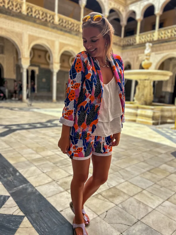 Wyróżnij się i noś się kolorowo! Dresowy komplet marynarka + krótkie spodenki. Spodenki – klasyczny krój na gumce w pasie, ściągany sznurkiem. Nogawki wywinięte. Długość? Do wyboru! Marynarka – dresowa, casualowa, otwarta – bez zapięcia z dwoma kieszeniami i szalowym dekoltem. Poniżej wymiary ubrań mierzone na płasko: SPODENKI szerokość spodenek w biodrach / guma w pasie XS – 50/ 62cm S – 52/ 64cm M – 54/ 68cm L – 56 /74cm XL – 58/ 80cm XXL – 60 / 86cm MARYNARKA szerokość w barkach / szerokość pleców pod pachami XS 37/44cm S 38/46cm M 39/47,5cm L 40/ 49cm XL 41/50cm XXL 42/52cm Składając zamówienie nie kupujesz gotowego produktu – szyjemy go specjalnie dla Ciebie. Składając zamówienie akceptujesz regulamin sklepu.