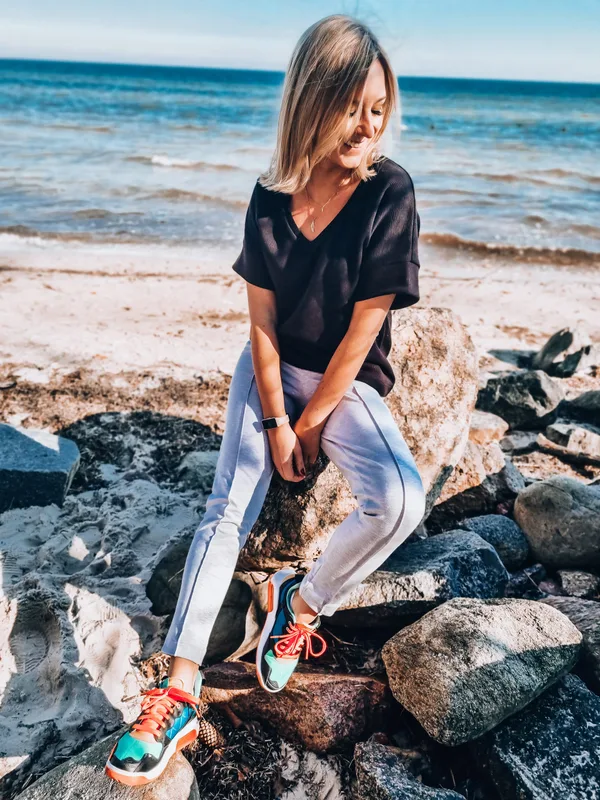 Spodnie dresowe uszyte w duchu semi-casual: wygodne, a jednak troszkę eleganckie. Charakterystyka: bawełniany materiał dresowy z dodatkiem elastanu dopasowany, ale nie obciskający krój nogawki zwężane wykończone podwinięciem ozdobny kancik z przodu karczek z tyłu nad pupą dwie kieszenie guma w pasie Wybierz kolor, rozmiar oraz podaj swój wzrost abyśmy dobrze dopasowały długość. Chciałabyś konkretną długość? Nie ma sprawy! Podaj w uwagach do zamówienia długość wewnętrzną nogawki. Na zdjęciu spodnie Elegancko! w rozmiarze S w kolorze jasny szary melanż oraz czarne, długość standardowa. Uszyte z dresówki z elastanem niesamowicie wytrzymałej – nie traci kolorów, nie wypychają się kolana. Rozmiarówka pełna. Skład: Bawełna 92%, Elastan 8% Gramatura: 260g/m2