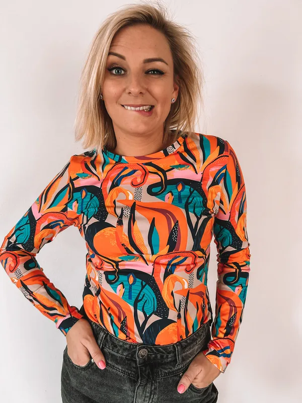 Grzeczny Longsleeve – wzorzysta bluzka damska w najlepszym wydaniu Grzeczny Longsleeve to wzorzysta bluzka damska, która łączy w sobie prostotę, wygodę i ponadczasowy styl. Jej klasyczny krój sprawia, że pasuje do wielu stylizacji – zarówno codziennych, jak i bardziej eleganckich. To model, który świetnie odnajdzie się w szafie każdej kobiety, stając się bazą do wielu zestawów. Wysoka jakość materiału i staranne wykonanie Bluzka została uszyta z bawełnianego jerseyu z dodatkiem elastanu. Dzięki temu jest przewiewna, przyjemna w dotyku i elastyczna – idealnie dopasowuje się do sylwetki, nie krępując ruchów. Staranność wykonania i dbałość o detale sprawiają, że Grzeczny Longsleeve będzie służył przez wiele sezonów, zachowując swój kształt i kolor. Personalizacja – wybierz swoją wersję Zamawiając Grzeczny Longsleeve, możesz samodzielnie zdecydować o jego wyglądzie i dopasowaniu do własnych potrzeb. Do wyboru masz: wzór – różnorodne, fantastyczne printy, które podkreślą Twój styl, rozmiar – zgodnie z tabelą rozmiarów, aby bluzka idealnie leżała, długość rękawów – krótki, ¾ lub długi, w zależności od preferencji, długość bluzki wzorzystej – dopasujemy ją indywidualnie, gdy podasz nam swój wzrost. Dzięki tym opcjom Twoja wzorzysta bluzka będzie naprawdę wyjątkowa i idealnie skrojona pod Ciebie. Jak nosić Grzeczny Longsleeve w warstwowych stylizacjach? Grzeczny Longsleeve to idealna baza do tworzenia warstwowych zestawów. Jesienią i zimą możesz założyć go pod oversizowy sweter, kardigan lub marynarkę, tworząc ciepłą, a jednocześnie elegancką stylizację. Wiosną świetnie wygląda w duecie z jeansową kurtką lub ramoneską, dodając outfitowi lekkości i swobodnego charakteru. Latem z kolei można nosić go pod lekką sukienkę na ramiączkach, dzięki czemu uzyskasz modny, wielowarstwowy efekt. Dzięki elastycznemu materiałowi bluzka dopasowuje się do ciała i nie krępuje ruchów, dlatego sprawdzi się w każdej wersji – od casualu po bardziej eleganckie stylizacje. Uniwersalny krój i wygoda na co dzień Grzeczny Longsleeve ma klasyczny, lekko dopasowany fason, który świetnie prezentuje się w połączeniu ze spódnicą, jeansami czy eleganckimi spodniami. To idealny wybór zarówno do pracy, jak i na spotkania czy codzienne wyjścia. Na zdjęciach prezentujemy modelkę w bluzce rozmiar S – przykład, jak świetnie układa się na sylwetce.