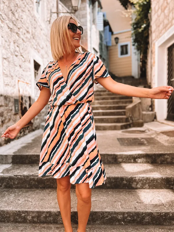 Urocza sukienusia. Delikatny materiał, śliczniusi wzór i uroczy krój. marszczone krótkie rękawki kopertowy dekolt na zakładkę (jeśli chcesz możemy złapać dwie warstwy dla Ciebie aby się nie rozchodziły) odcinana gumką w talii luźny dół wykończony falbanką Co wbierasz? wzór (zmieniają się często) rozmiar (od XXS do XXL) długość standard to 88cm – możesz zmienić Materiał z którego szyjemy to lekka wiskoza w pięknych wzorach. Absolutnie nie prześwituje. Patrycja na zdjęciu ma sukienkę w rozmiarze S, wzór fale, długość 88cm. Wiskozę pierz tylko ręcznie w niskiej temperaturze. Odkryj sukienkę „Uroczą” na No Pewnie! Ta elegancka sukienka to doskonały wybór na wyjątkowe okazje. Posiada klasyczny, kobiecy fason, który podkreśla sylwetkę, a delikatny materiał zapewnia komfort noszenia. Wyjątkowy krój oraz subtelne detale dodają uroku, dzięki czemu sukienka jest idealna zarówno na co dzień, jak i na bardziej formalne wyjścia. Dostępna w różnych wzorach, łatwo dopasuje się do różnych stylizacji.
