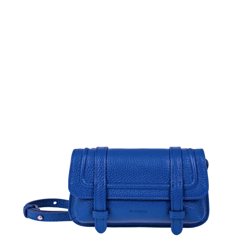 Nasza bestsellerowa mini torebka-nerka w nasyconym kolorze szafiru z nutą purpury. Do noszenia na skos, w talii lub na biodrach — funkcjonalna i wyrazista. Mieści telefon i najpotrzebniejsze drobiazgi. Mini torebka wykonana z mięsistej skóry z fakturą delikatnego groszku. Wyrazisty niebieski kolor szafiru z delikatną nutą fioletu/indygo. Kompaktowa, funkcjonalna forma. Zapinana na dwa kryte magnesy, dodatkowo zabezpieczona paskami ze szlufkami. Regulowany pasek umożliwia różne sposoby noszenia. Dyskretne okucia w kolorze złotym. Wnętrze ze skórzaną kieszonką na karty wykończone płócienną podszewką pod kolor. * Sznurkowy pasek nie wchodzi w skład kompletu do torebki Zaprojektowana i wykonana w naszej pracowni w Warszawie. Pakowana w worek przeciwkurzowy z logo.