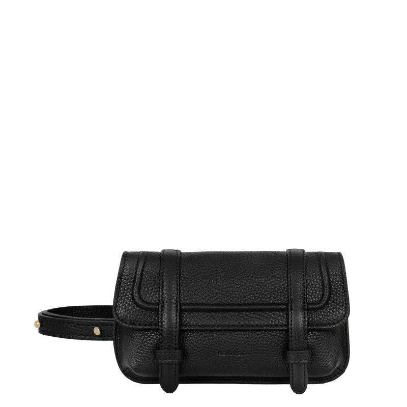 Nasza bestsellerowa mini torebka Belt Bag w czarnej groszkowej skórze. Wszechstronna — możesz nosić ją na skos, w talii lub na biodrach. Praktyczna, a jednocześnie na tyle wyrazista, by nadać każdej stylizacji charakter. Mieści telefon i najważniejsze drobiazgi, które chcesz mieć zawsze pod ręką. Mini torebka No. 108 może być wystylizowana na kilka sposobów: jako nerka wokół talii lub bioder lub noszona na skos. Ta mini torebka wykonana z mięsistej skóry bydlęcej z fakturą groszku i pasuje do wielu stylizacji. Można ją nosić na biodrach, w pasie lub na skos. STYL: KOLOR: czarny MATERIAŁ: włoska skóra bydlęca z fakturą groszku, pozyskana w sposób zrównoważony (upcycling), mięsista, matowa ZAPIĘCIE: 2 kryte magnesy, 2 paski ze szlufkami OKUCIA: złote knopiki ŚRODEK: czarna płocienna podszewka, skórzana kieszonka na karty WYMIARY: WIELKOŚĆ: mini, pomieści telefon, klucze i mały portfel WYSOKOŚĆ: 12 cm SZEROKOŚĆ: 20 cm GŁĘBOKOŚĆ: 3 cm PASEK: regulowany, max. długość: 125 cm Wyprodukowana w Polsce przez lokalnych rzemieślników. Pakowana w lniany worek przeciwkurzowy z logo. Kompaktowa, funkcjonalna i ponadczasowa nerka. Torebka wykonana z włoskiej mięsistej skóry bydlęcej z fakturą grochu w czarnym kolorze. Skóra jest podporna na zarysowania, bardzo wysokiej jakości. Zapinana na dwa kryte magnesy, dodatkowo zabezpieczona paskami ze szlufkami. Regulowany pasek umożliwia różne sposoby noszenia: na skos, w talii i na biodrach. Dyskretne okucia w kolorze złotym. Wnętrze wykończone podszewką płócienną w czarnym kolorze. W środku skórzana kieszonka na karty. Projektowana i szyta w naszej pracowni w Warszawie. Pakowana w worek przeciwkurzowy z logo.