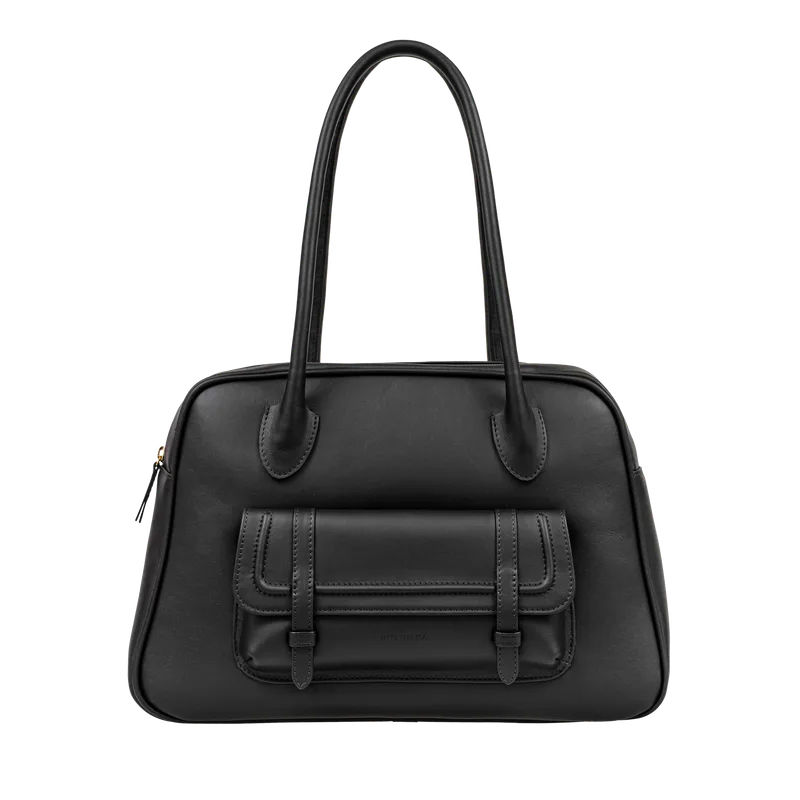 Bowling Bag Maxi to duża, dopracowana w proporcjach sylwetka z autorskim dekorem inspirowanym linią Saddle. Zachwyca wyrazistym charakterem i rzemieślniczą precyzją wykonania. Może pełnić funkcję weekendera lub przestronnej torby na co dzień. Lekka mimo swojej pojemności. Zachowuje strukturę i proporcje, jednocześnie miękko dopasowując się do ciała na wygodnych długich rączkach. Charakterystyczna kieszonka na froncie, inspirowana linią Saddle, buduje spójność kolekcji. Przestronne wnętrze mieści 15-calowy komputer. Zaprojektowana z myślą o podróży i codziennym rytmie miasta. Model można łączyć w modułowe zestawy z torebkami z linii Saddle — na przykład z Belt Bag Maxi w kolorze czarnym. • Kolor: czarny • Materiał: mięsista włoska skóra licowa, gładka, matowa • Zapięcie: metalowy suwak YKK i dodatkowa kieszeń z klapką na froncie torby • Okucia: złote; metalowe stopki w dnie • Środek: płócienna podszewka w kolorze czarnym, kieszonki wewnętrzne na suwak, smycz na klucze Zaprojektowana i szyta w naszej pracowni w Warszawie. Pakowana w lniany worek przeciwkurzowy z logo.