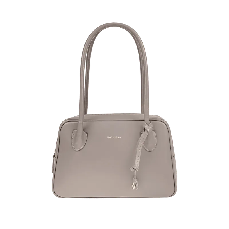 Bowling Bag Midi o prostokątno-trapezowej formie to wyrazista, modowa sylwetka. Wykonana z gładkiej skóry w kolorze jasnego taupe z nutą szarości. Zgrabna, wyrazista forma z modowym sznytem. Długie rączki, precyzyjnie wypracowane z najwyższą kaletniczą precyzją, wygodnie układają się na ramieniu. Przemyślana pojemność — mieści 13-calowego laptopa bez etui. Rzemyk z metalowym kółkiem jako biżuteryjny detal. • Materiał: gładka skóra bydlęca w pięknym kolorze szaro-kremowym z lekko metalicznym połyskiem • Zapięcie: metalowy suwak YKK w kolorze złotym • Okucia: złote; metalowe stopki w dnie • Środek: jasna płócienna podszewka; kieszonki wewnętrzne na suwak. Zaprojektowana i ręcznie uszyta w naszej pracowni w Warszawie. Pakowana w worek przeciwkurzowy z logo.